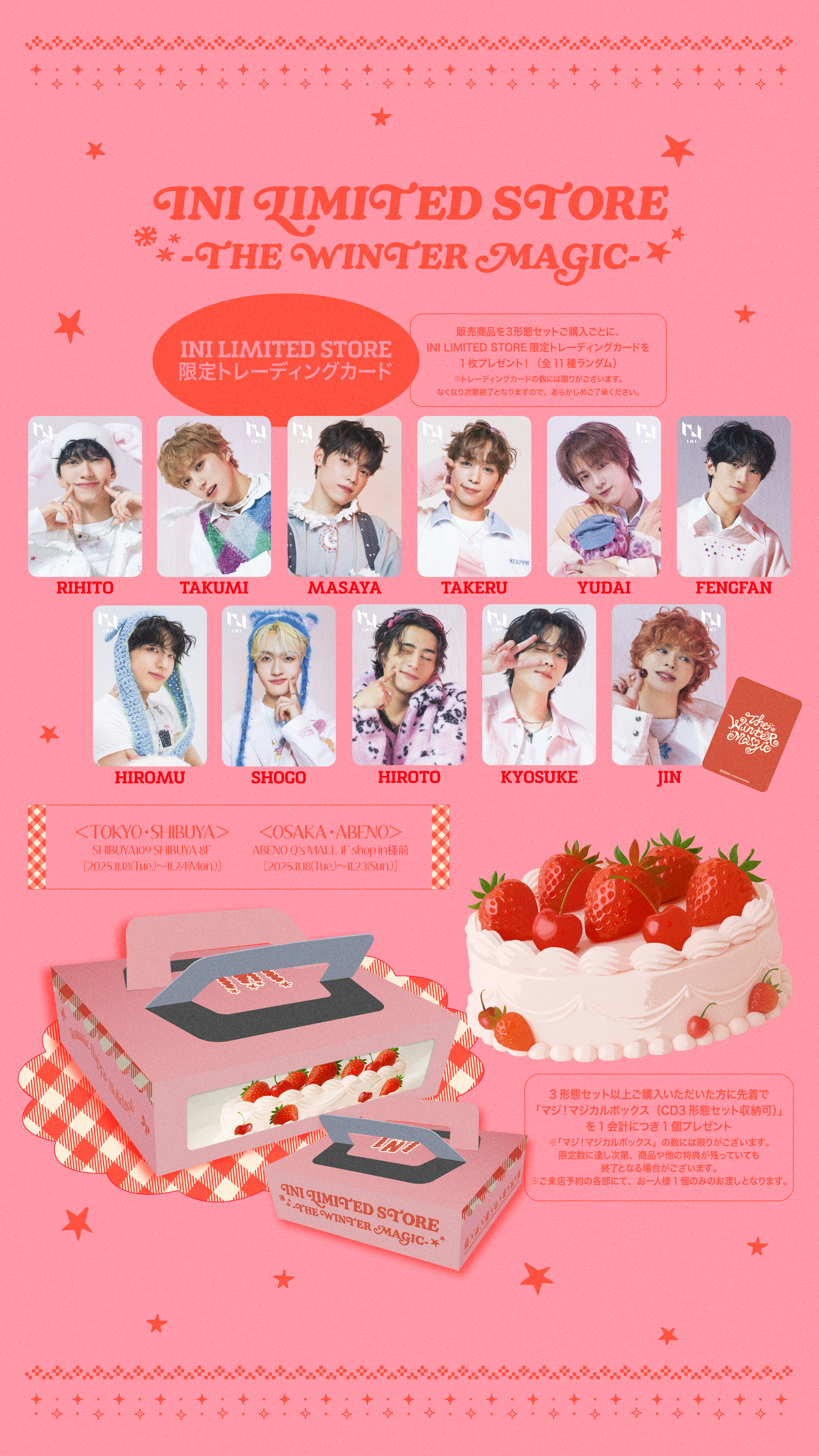 <11/19(水)追記>INI LIMITED STORE -THE WINTER MAGIC- 11月18日(火)よりSHIBUYA109渋谷店・あべのキューズモールで開催決定!